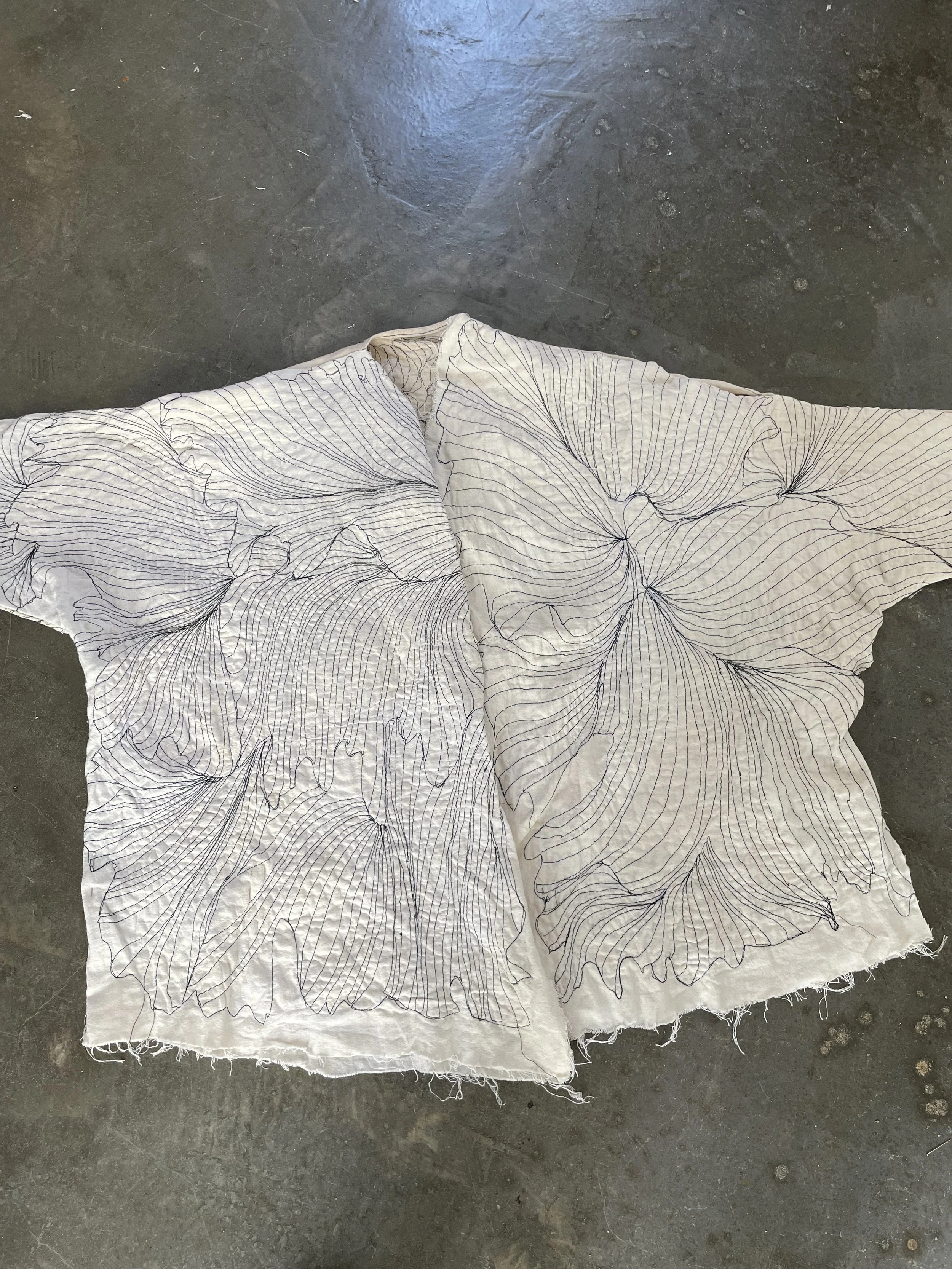 I have only one shape for either the dress or the jacket (as you will see below), happy to discuss lengths and slight changes if required. They are completely personalised embroidery wise. I am open to discussing this. My main focus is fungal shapes or patterns found in nature, but I open to other ideas.